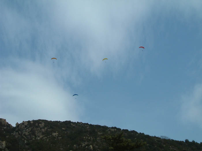 | 途中の海岸でひと休み中。 | あきさん自慢のキラキラテール☆ | パラグライダーしてました。 |